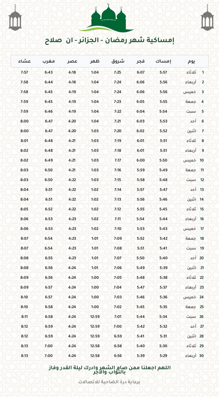 إمساكية رمضان 1447