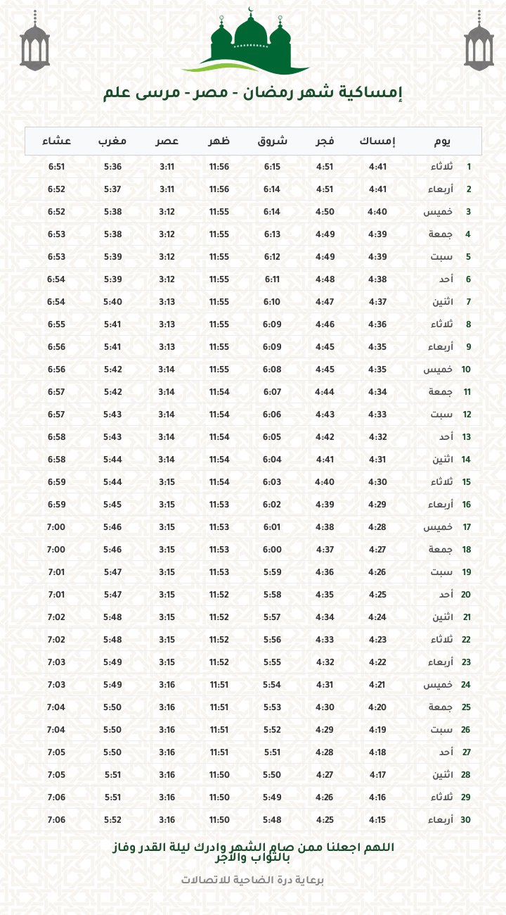 حمّل إمساكية رمضان الخاصة بمدينتك الآن!
