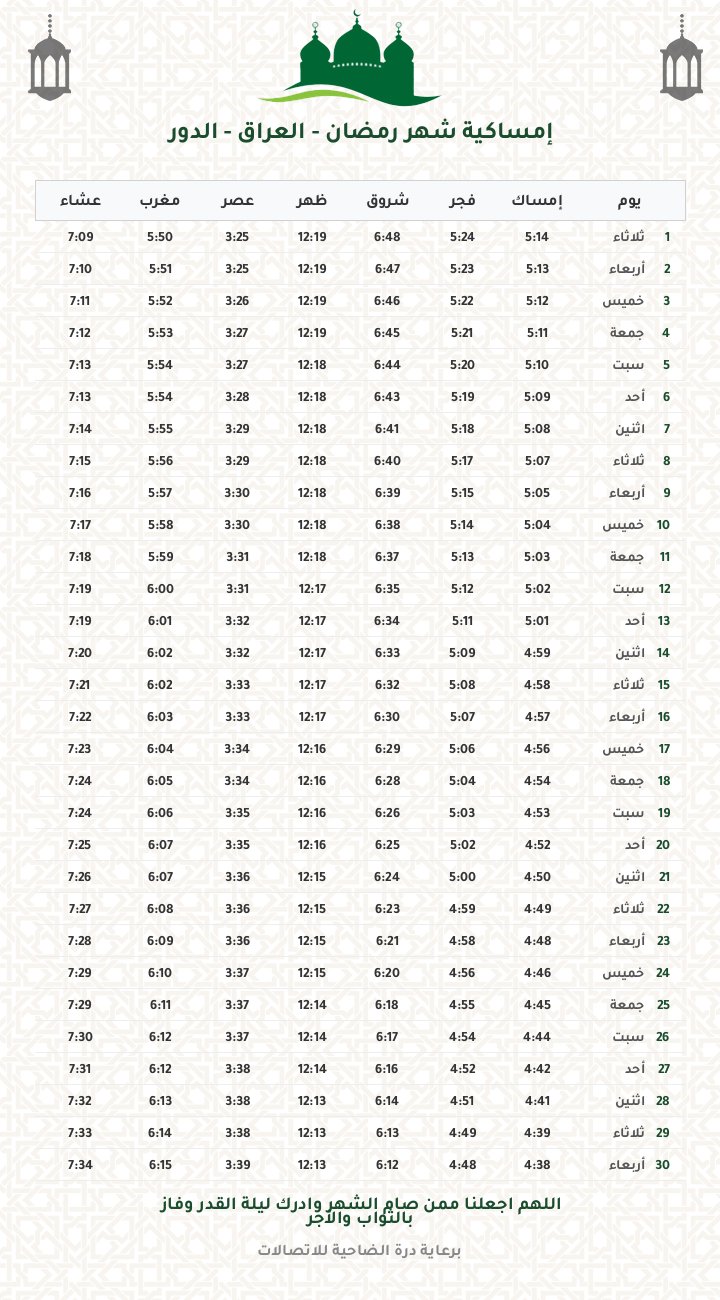 إمساكية رمضان 1447