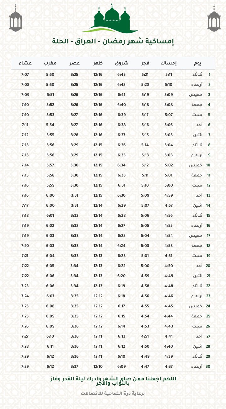 إمساكية رمضان 1447