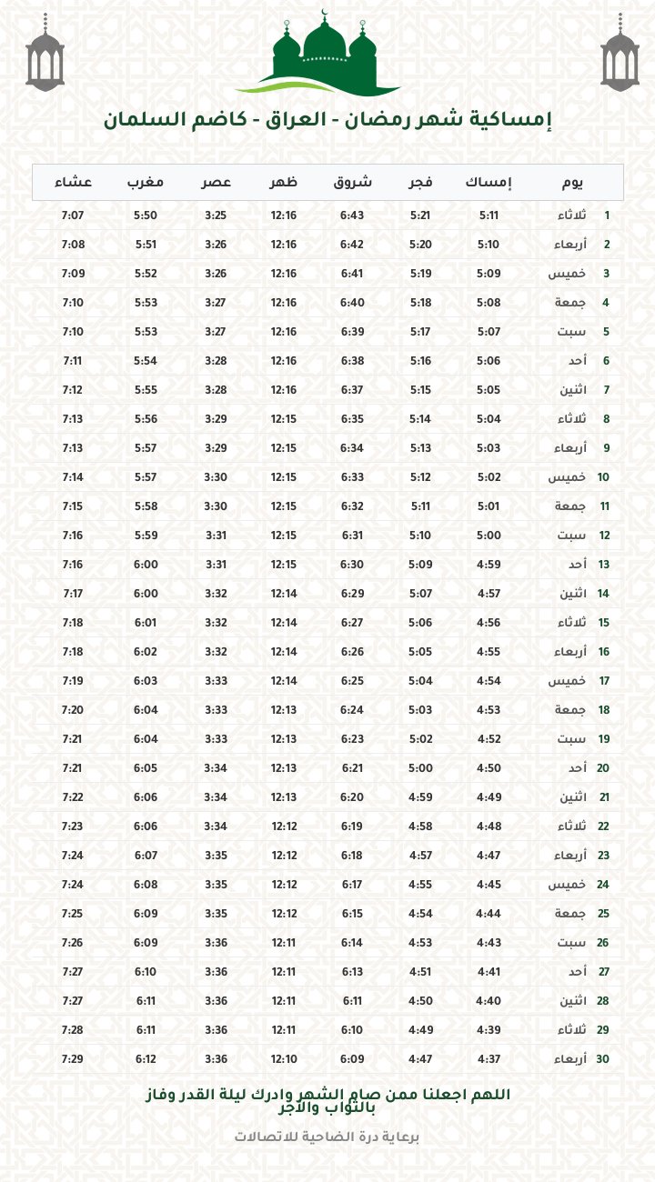 إمساكية رمضان 1447
