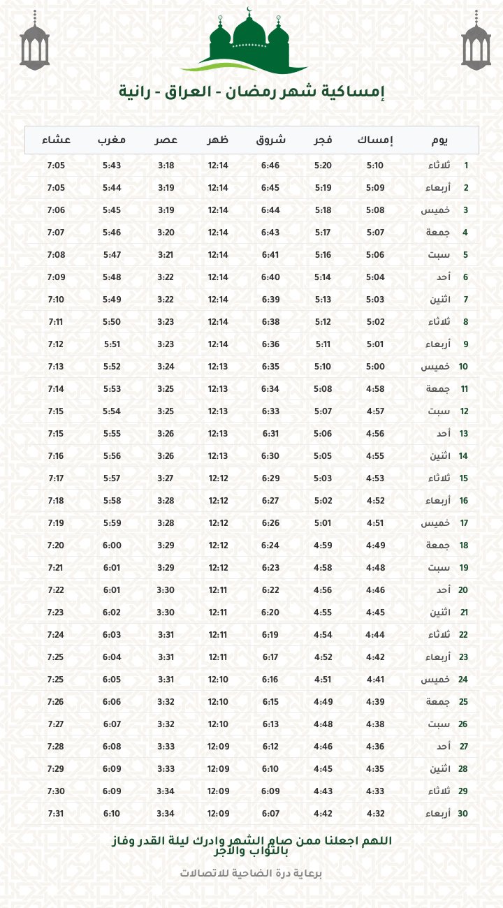 إمساكية رمضان 1447
