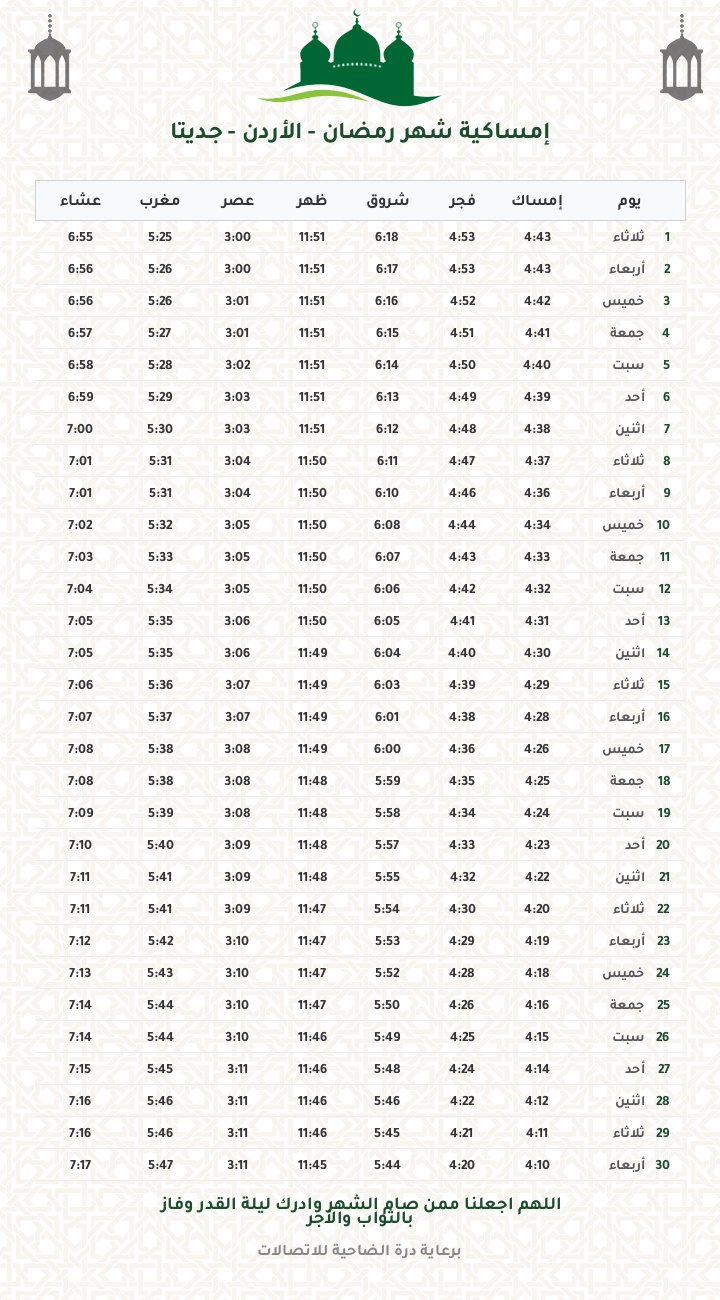 حمّل إمساكية رمضان الخاصة بمدينتك الآن!