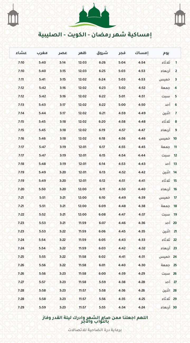 إمساكية رمضان 1447