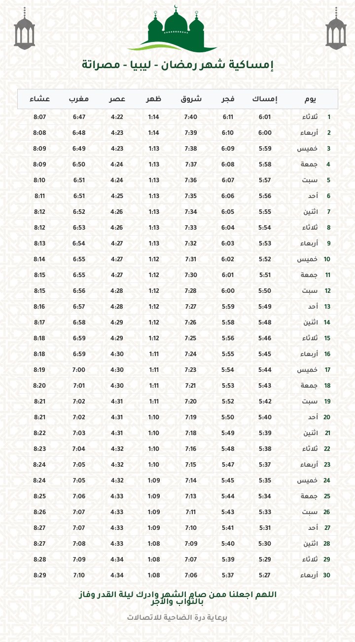 إمساكية رمضان 1447