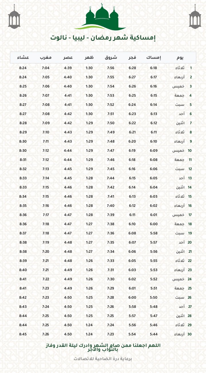 إمساكية رمضان 1447