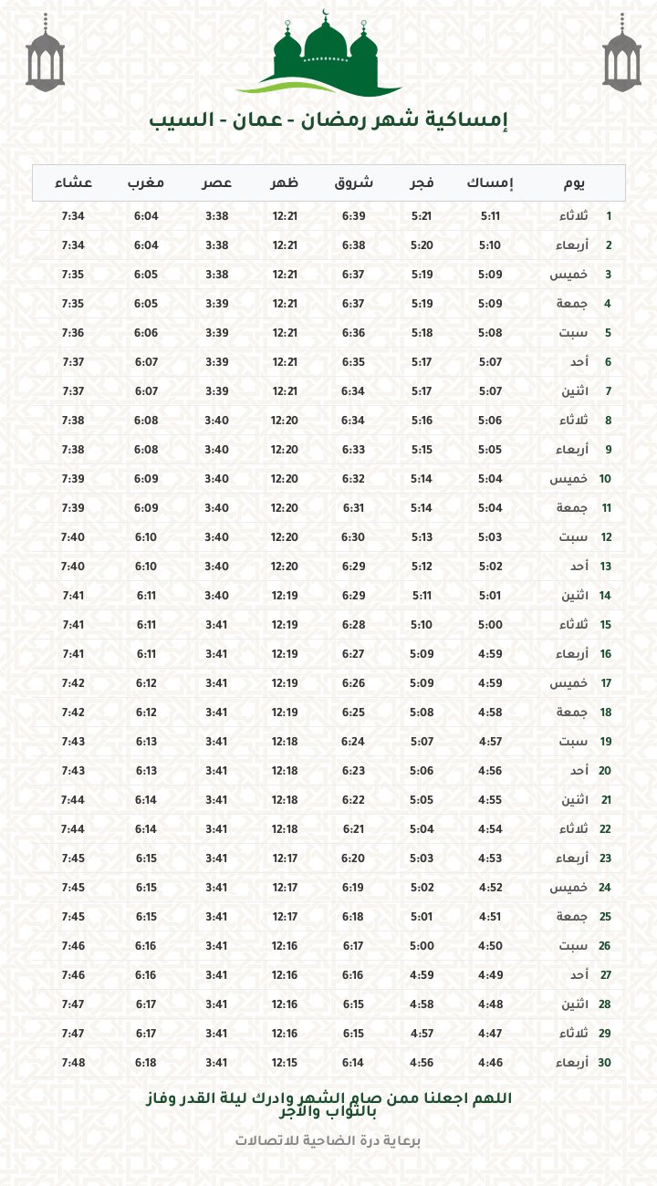 حمّل إمساكية رمضان الخاصة بمدينتك الآن!
