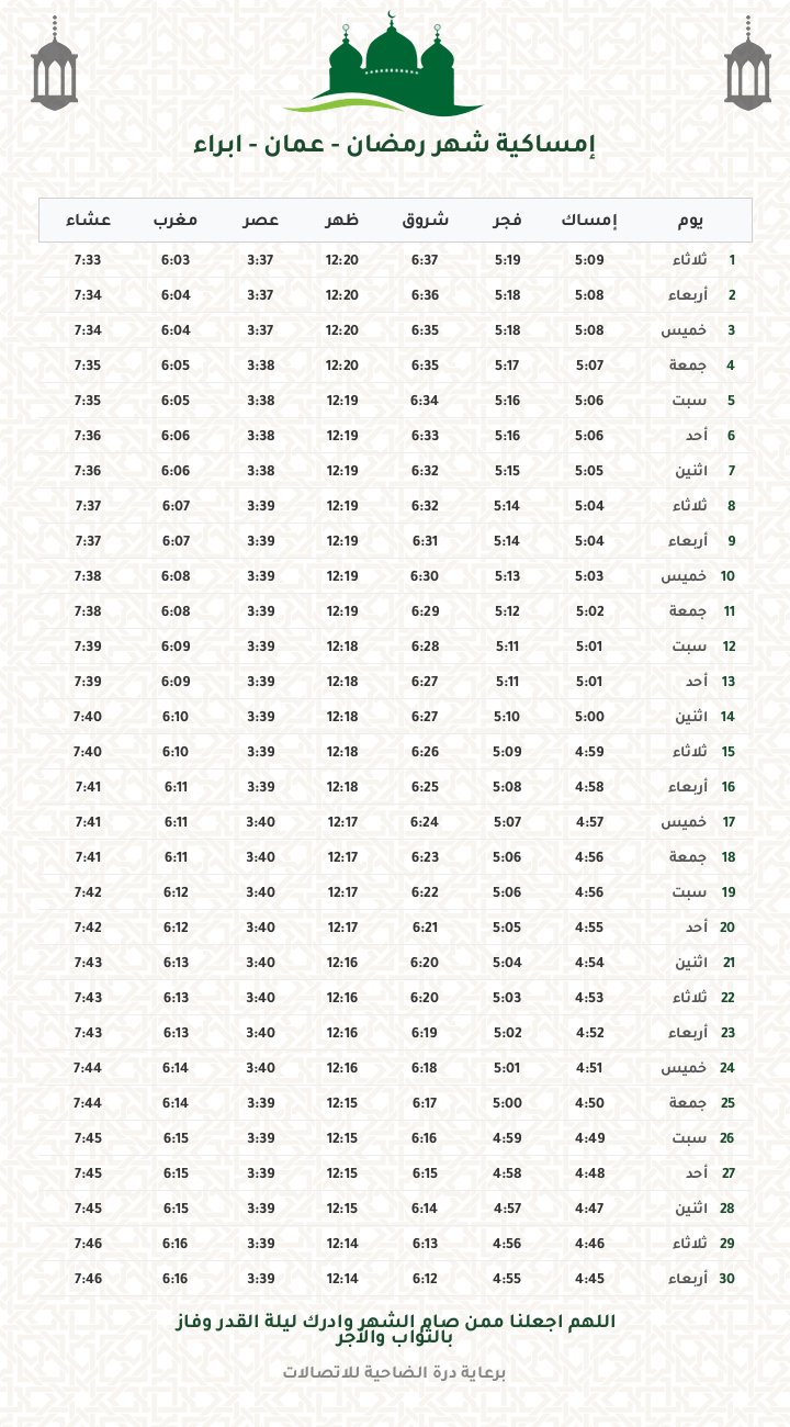 إمساكية رمضان 1447