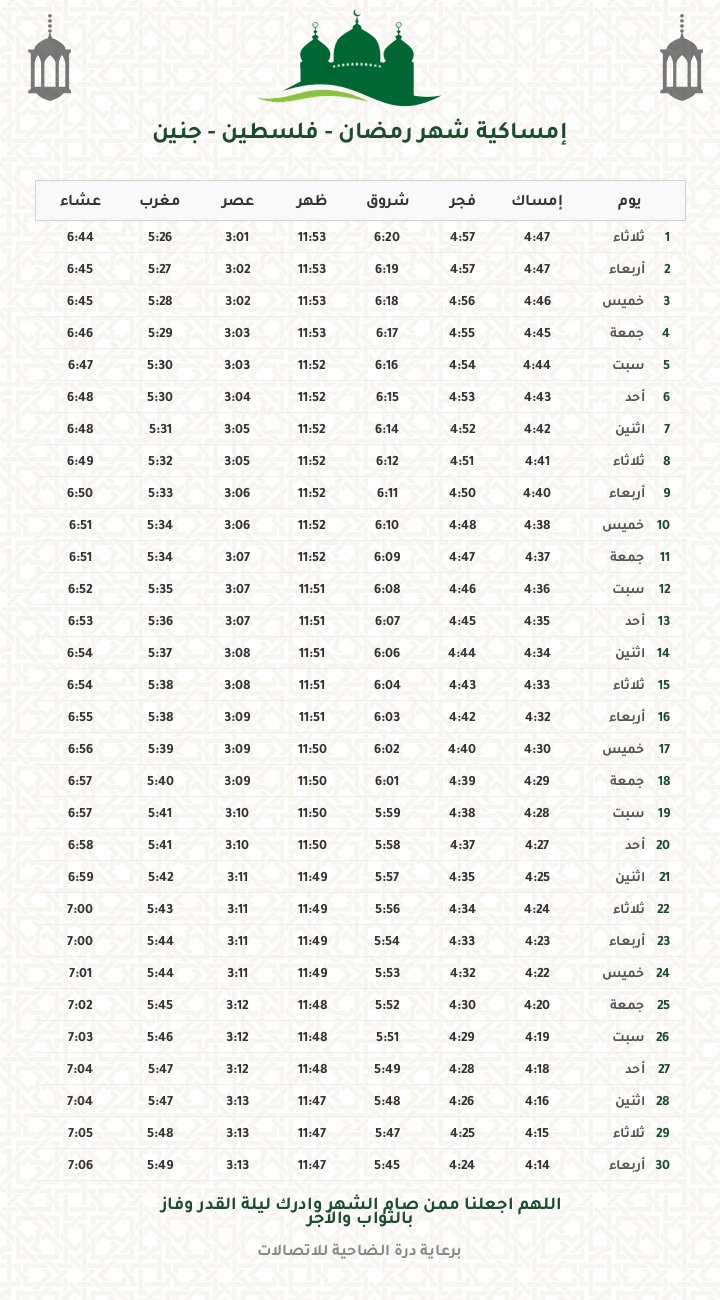 إمساكية رمضان 1447