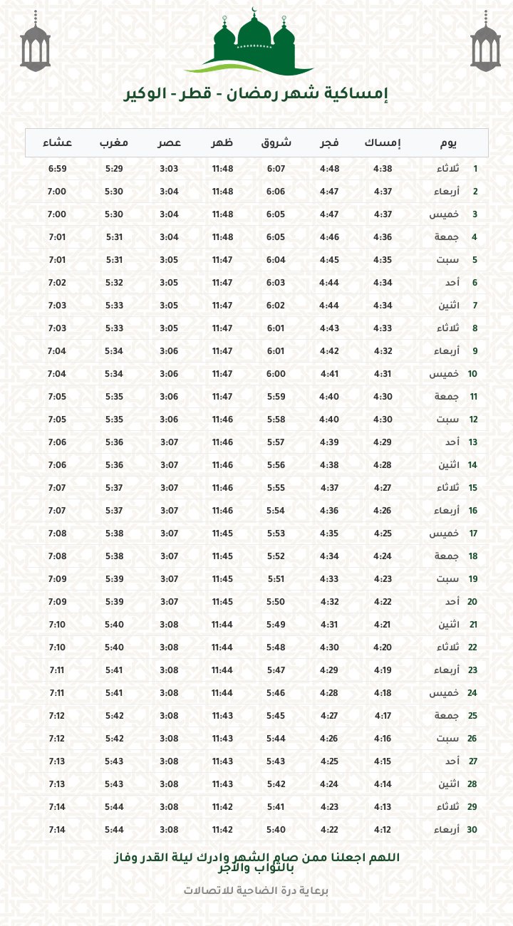 إمساكية رمضان 1447