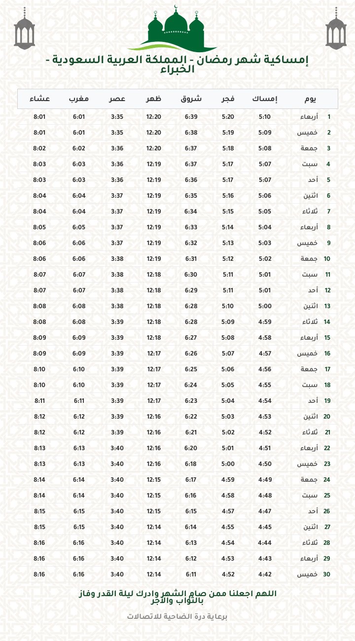 إمساكية رمضان 1447