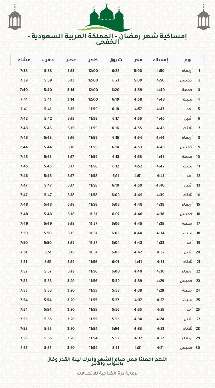 إمساكية رمضان 1447