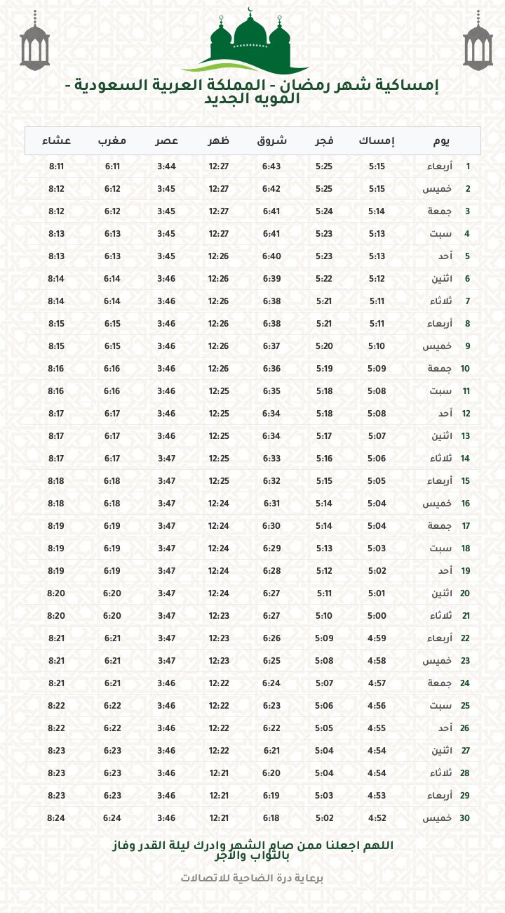 حمّل إمساكية رمضان الخاصة بمدينتك الآن!