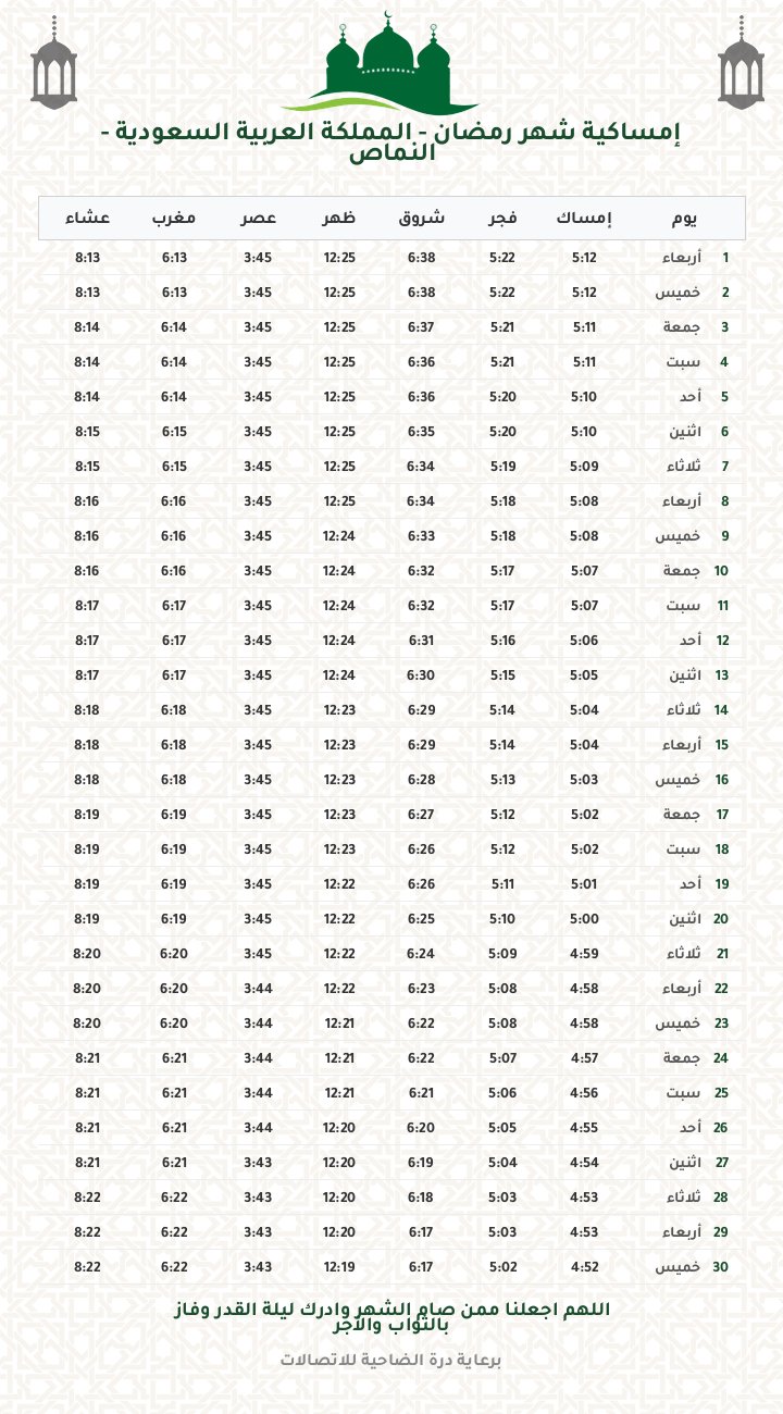 حمّل إمساكية رمضان الخاصة بمدينتك الآن!