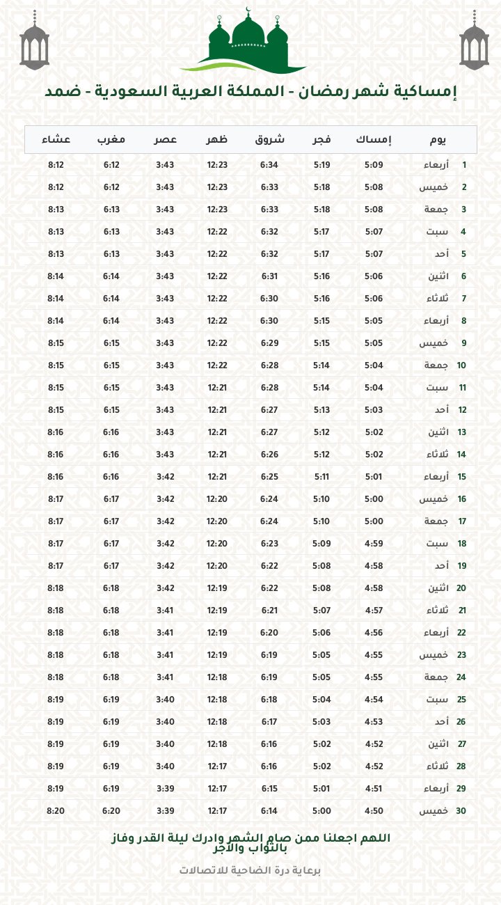 إمساكية رمضان 1447