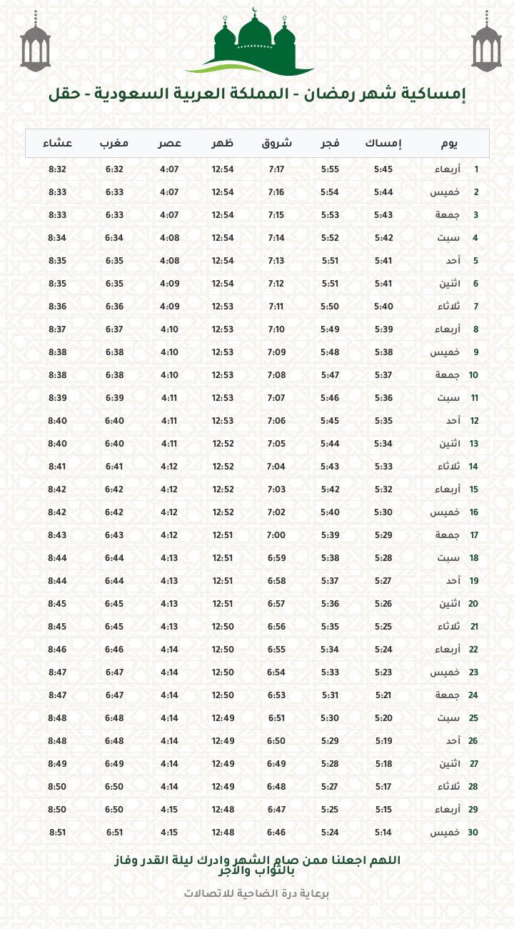 حمّل إمساكية رمضان الخاصة بمدينتك الآن!