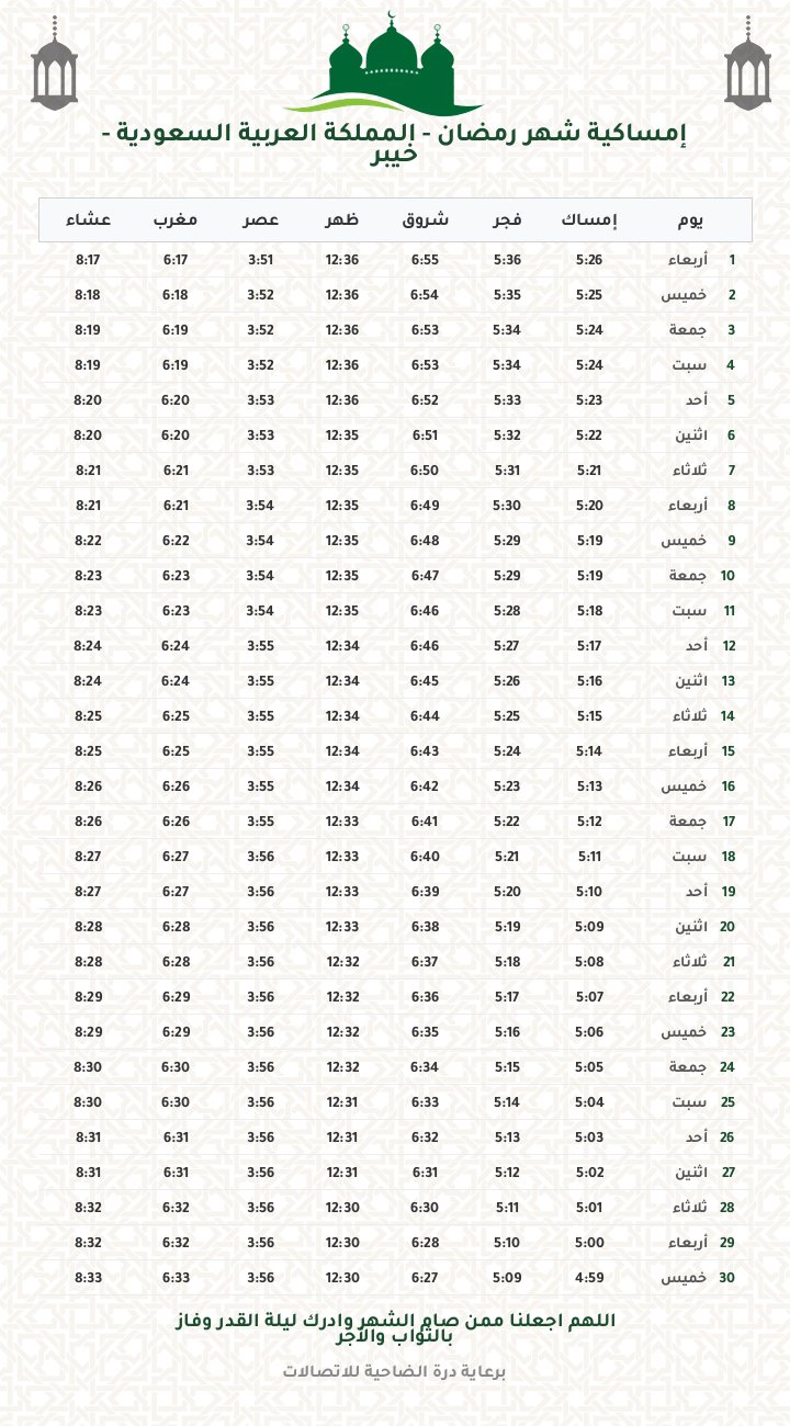 حمّل إمساكية رمضان الخاصة بمدينتك الآن!