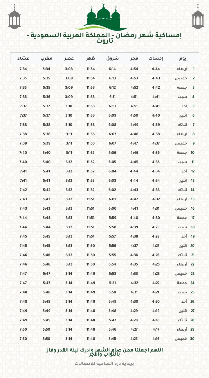 حمّل إمساكية رمضان الخاصة بمدينتك الآن!