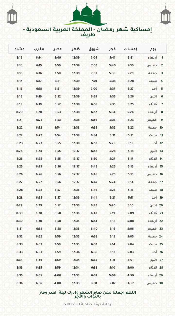 إمساكية رمضان 1447