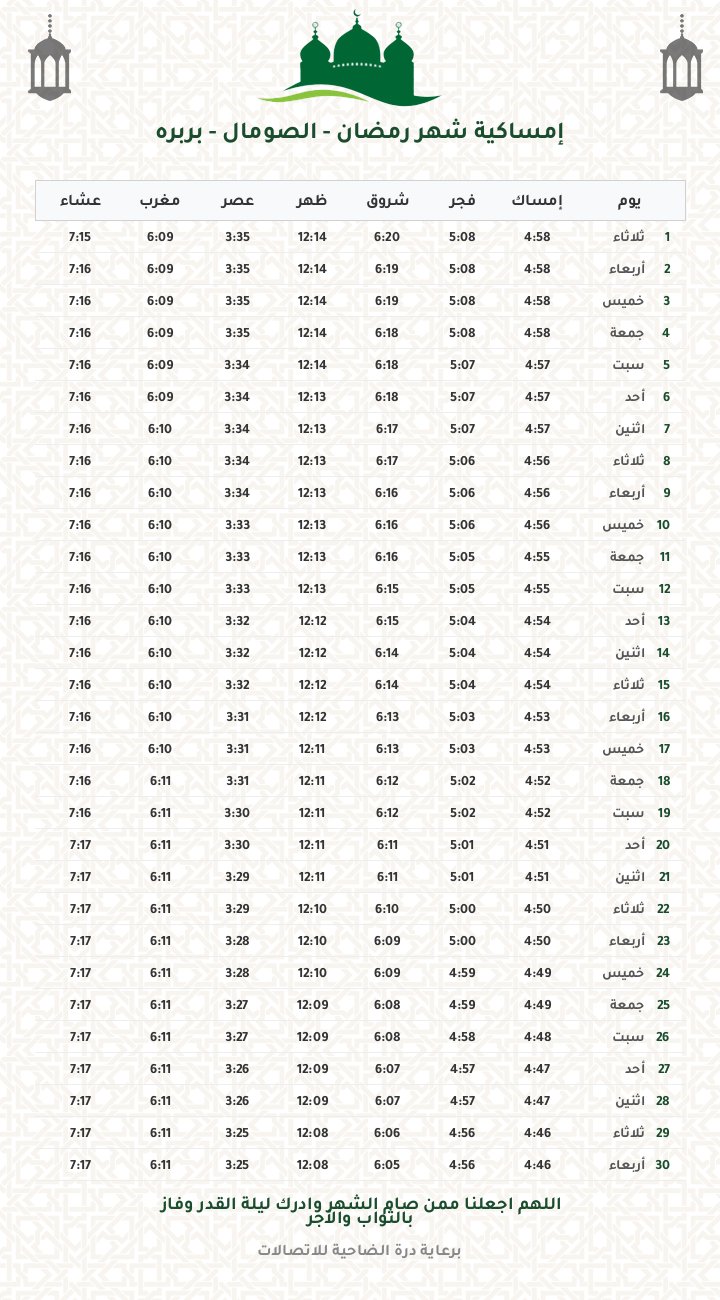 إمساكية رمضان 1447