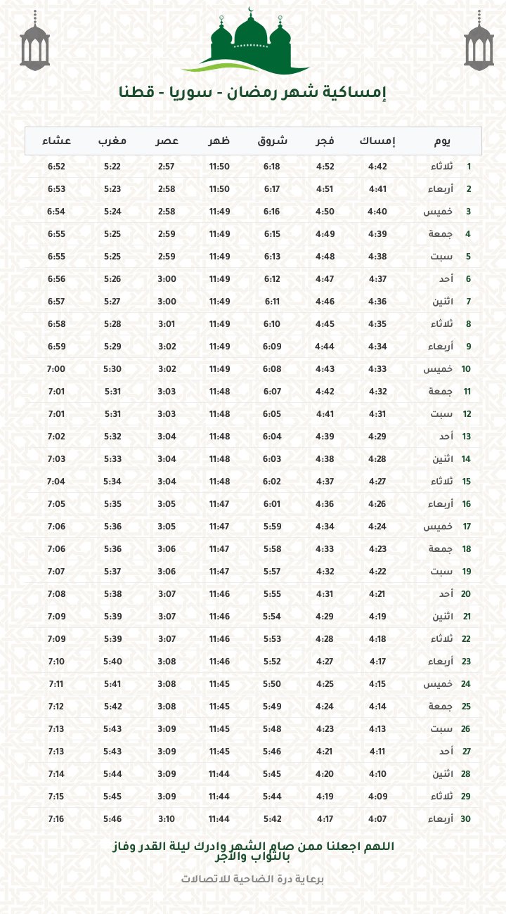 حمّل إمساكية رمضان الخاصة بمدينتك الآن!