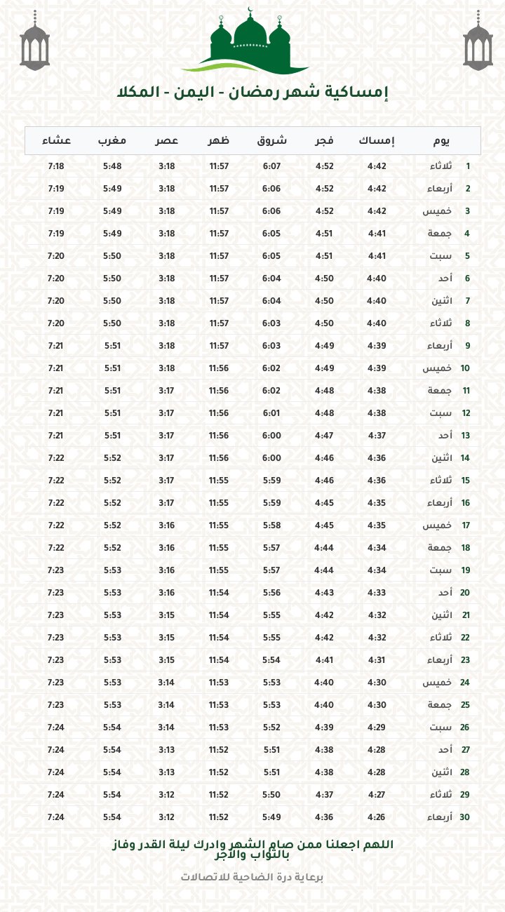 حمّل إمساكية رمضان الخاصة بمدينتك الآن!