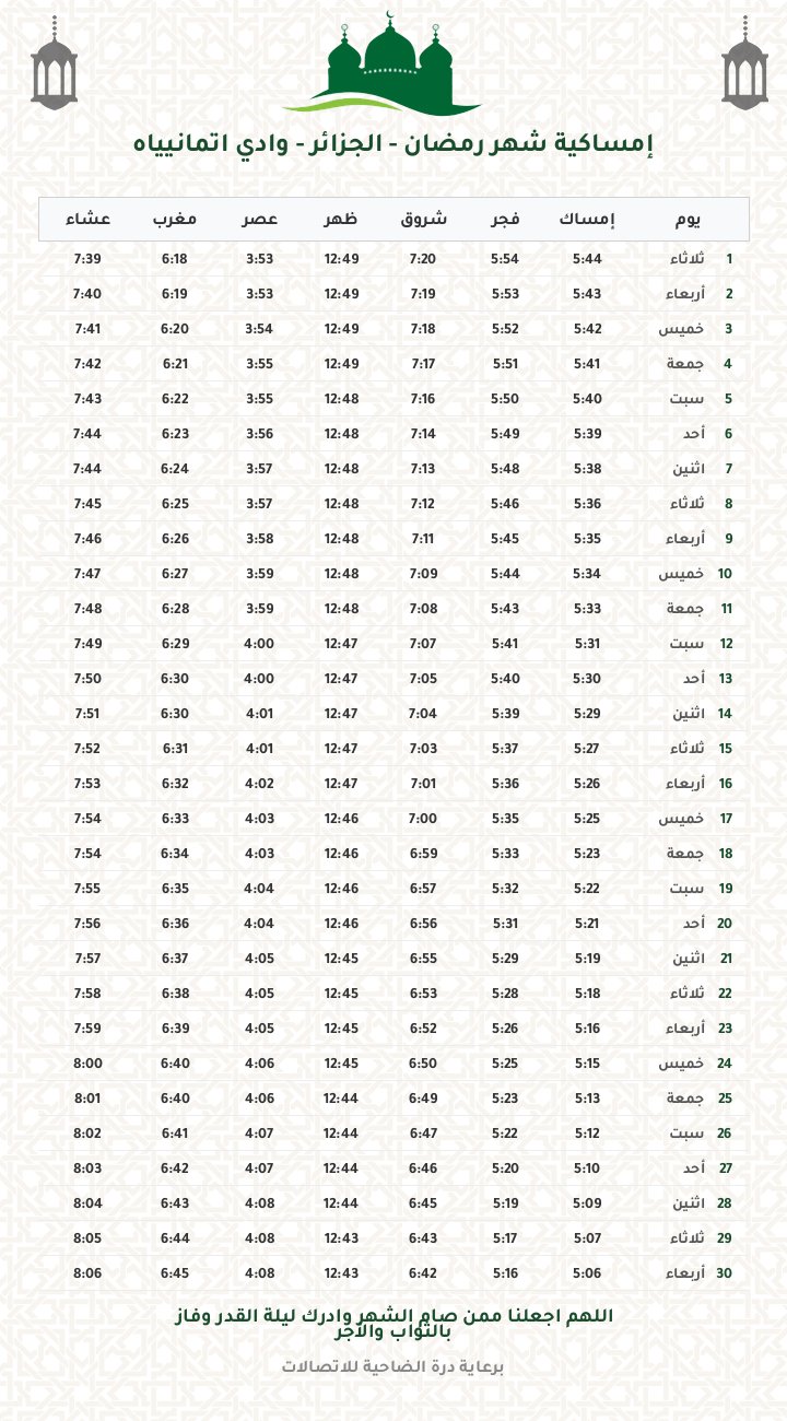 حمّل إمساكية رمضان الخاصة بمدينتك الآن!
