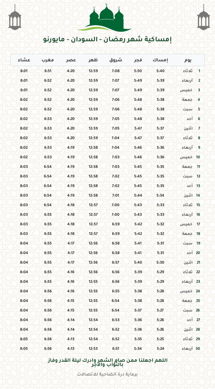 إمساكية رمضان 1447
